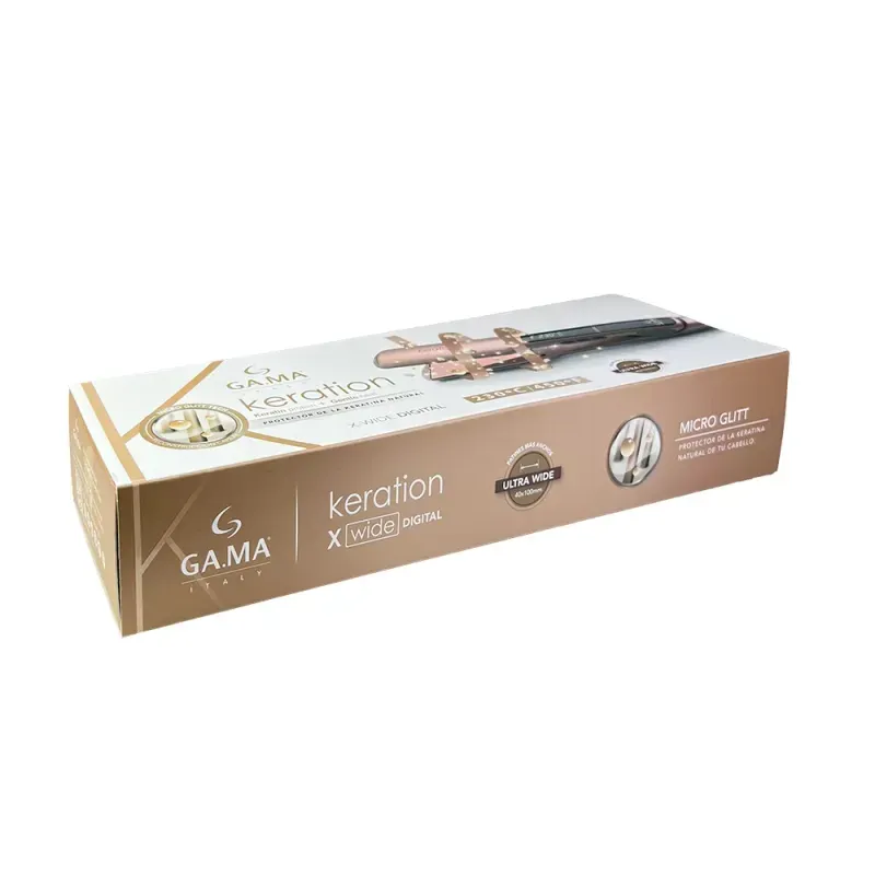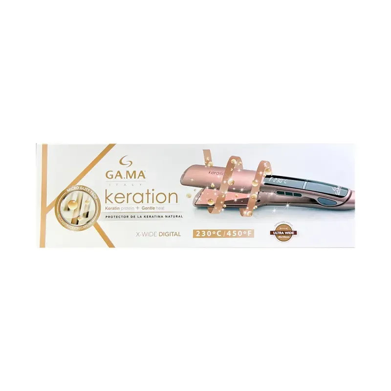 X-Wide Digital Keration presenta una evolución en las planchas tradicionales, con patines extra anchos de 40x100 mm. Que permiten alisar mayor cantidad de cabello en menos pasadas. Con tecnología Micro Glitt protectora de la keratina natural del cabello.