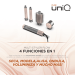El Multi Styler UniQ Flow 4 en 1 de GA.MA Professional es la herramienta definitiva para lograr resultados de salón en casa. Su diseño versátil combina las funciones de secador, alisador, rizador y cepillo en un solo dispositivo, permitiéndote secar, alisar, ondular y dar volumen de forma fácil y eficiente.