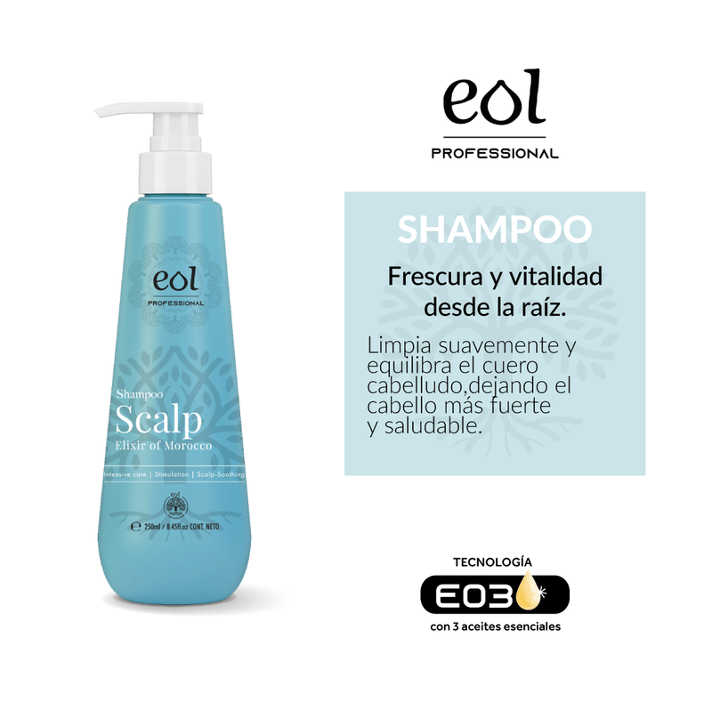 El COMBO EOL Scalp Elixir of Morocco incluye Shampoo y Acondicionador de 250ml, formulados para nutrir, hidratar y revitalizar el cabello y cuero cabelludo. Su fórmula enriquecida con aceite de argán ayuda a fortalecer la fibra capilar, aportar brillo, suavidad y proteger contra daños diarios. Ideal para uso diario, este combo ofrece una experiencia completa de cuidado capilar, dejando el cabello limpio, manejable y saludable desde la raíz hasta las puntas.