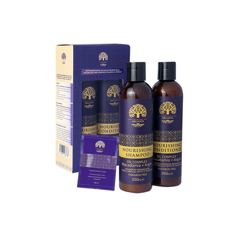 Tratamiento de nutrición enriquecido con aceite de Macadamia y Argán que lava suavemente el cabello aportándole máxima hidratación, suavidad y brillo.