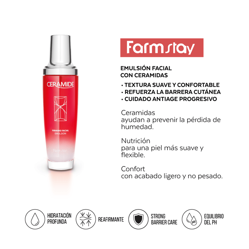 Emulsión diseñada para ayudar a prevenir la pérdida de humedad y aportar una sensación de piel nutrida y confortable. La ceramida ayuda a mantener el equilibrio de la piel, dejando un acabado suave y flexible.