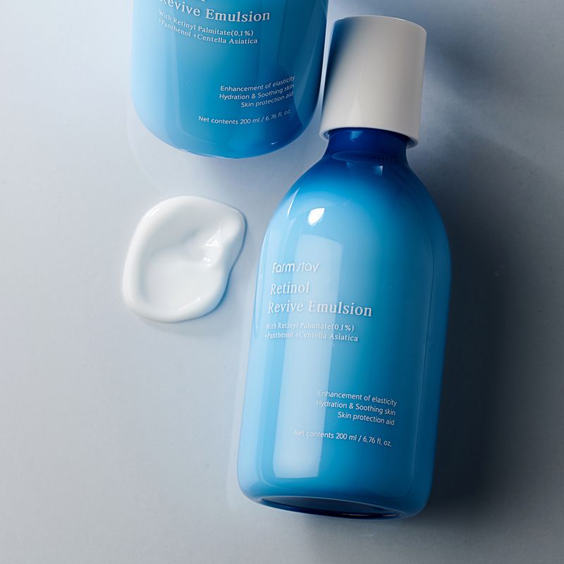 La Retinol Revive Emulsion de Farmstay es una emulsión facial antiedad formulada con retinol, un ingrediente activo conocido por estimular la renovación celular y mejorar visiblemente la apariencia de la piel. Esta fórmula de textura ligera se absorbe rápidamente, aportando beneficios potentes sin sensación pesada, para ayudar a suavizar líneas finas, arrugas y mejorar la textura general del rostro.