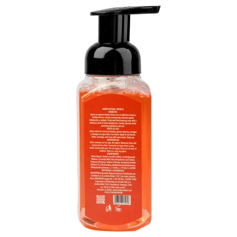 Jabón en espuma de perfil frutal antioxidante. Formulado para aportar frescura inmediata. La combinación de Aloe Vera con el aroma a frutillas frescas crea una sinergia refrescante. Al igual que el resto de la línea, garantiza la integridad de la barrera cutánea gracias al Acetato de Tocoferol (Vitamina E) mientras la Clorhexidina elimina patógenos eficazmente.