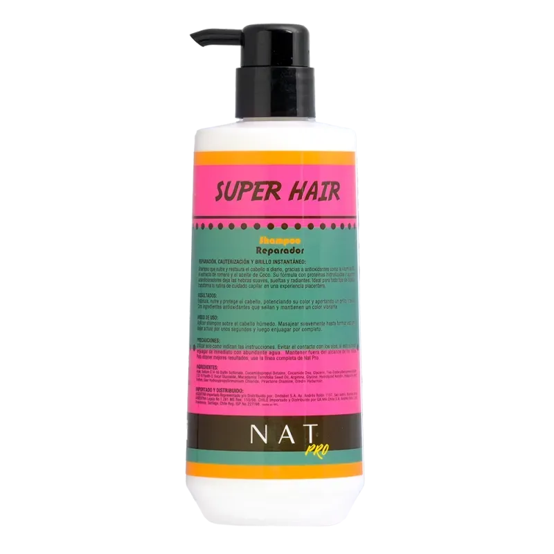 El Shampoo Superhair NAT PRO está formulado para brindar una limpieza profunda y efectiva sin resecar el cabello ni alterar el equilibrio natural del cuero cabelludo. Su fórmula avanzada elimina impurezas y residuos acumulados mientras fortalece la fibra capilar desde el primer lavado.