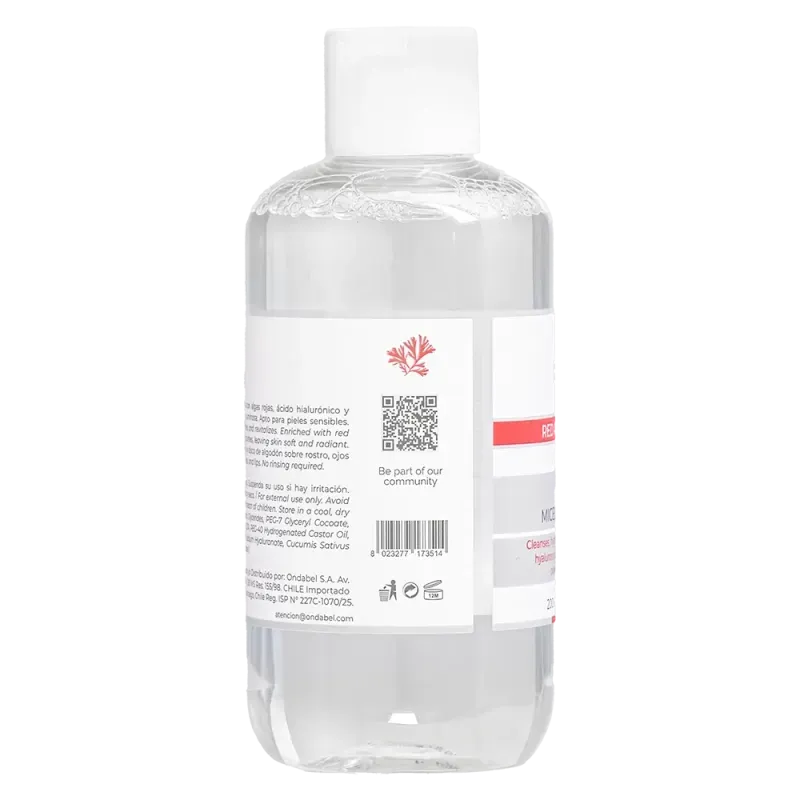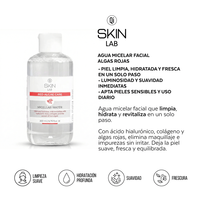 Agua micelar facial que limpia, hidrata y revitaliza la piel en un solo paso. Su fórmula con algas rojas, ácido hialurónico y colágeno elimina eficazmente el maquillaje y las impurezas sin irritar ni resecar, dejando la piel fresca, suave y equilibrada. Ideal incluso para pieles sensibles y libre de parabenos, ofrece una limpieza profunda con sensación de confort y bienestar.