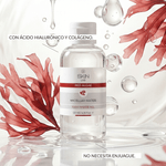Fórmula micelar que ayuda a eliminar maquillaje, grasa e impurezas sin necesidad de enjuague. Su combinación de algas rojas, ácido hialurónico y colágeno acompaña la hidratación y deja la piel con sensación fresca y suave.