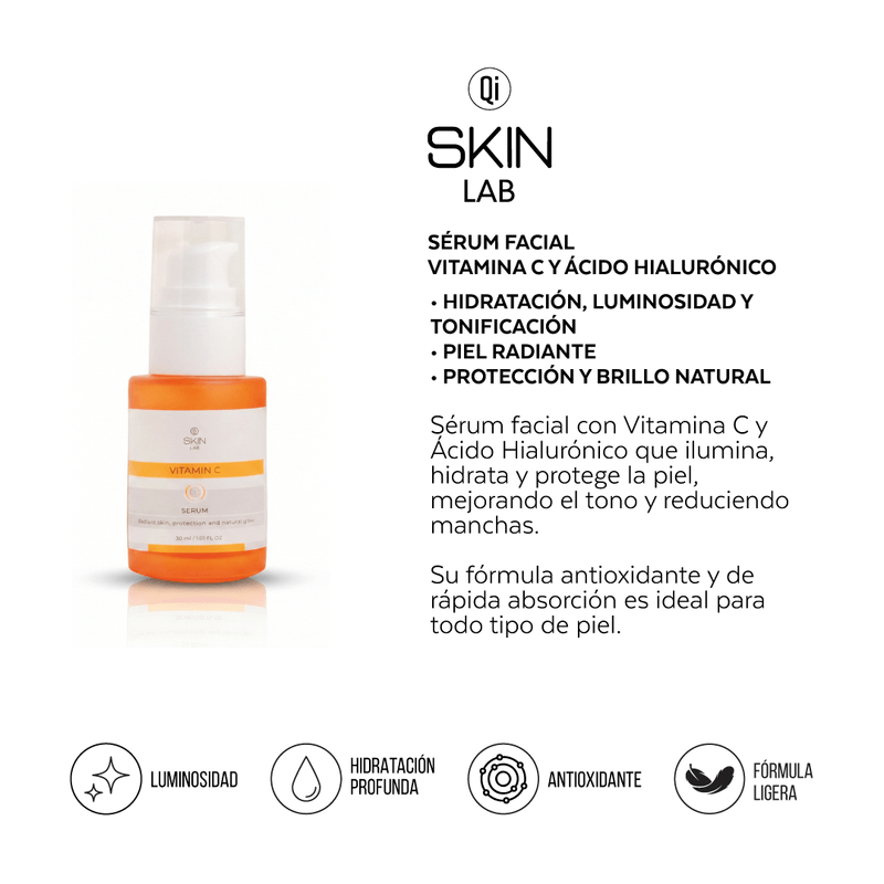 Sérum formulado con vitamina C y ácido hialurónico que ayuda a mejorar el tono de la piel y aportar un efecto antioxidante, dejando la piel radiante, suave y saludable.